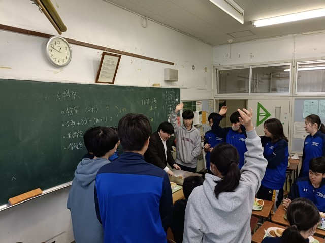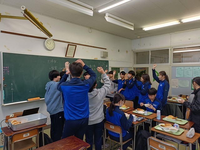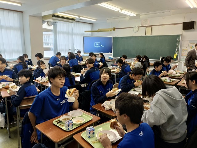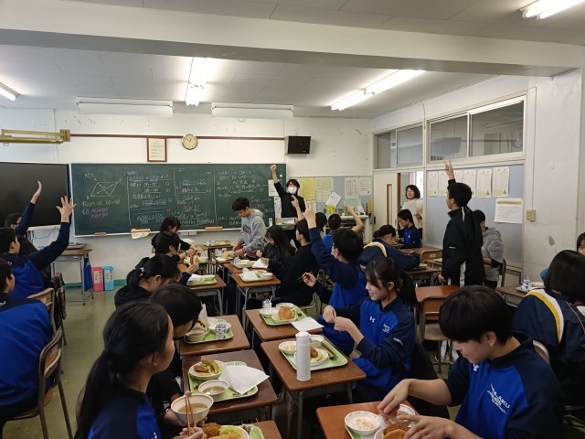 校長室に戻り、今日のメニューを作った給食調理員さんを交えての懇談!!