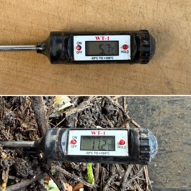 ※1枚目写真上段・・・外気温、下段・・・たい肥内温度
