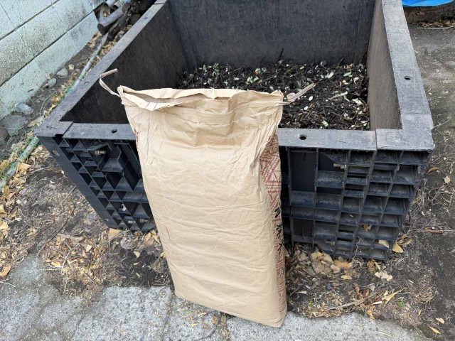 分解があまり進んでいないことは予測できたので、地域のお米屋さんに米ぬかをご提供いただき、年明け以降の野菜くずを刻んで切り返しました。