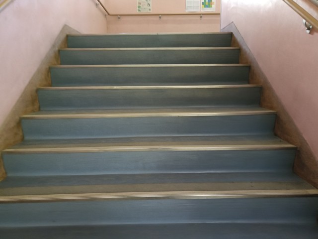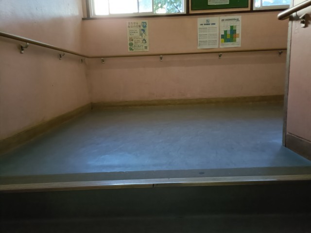 今日も主事さん 頑張って水拭き!! 最近は空気が乾燥 雨の日が少ないです