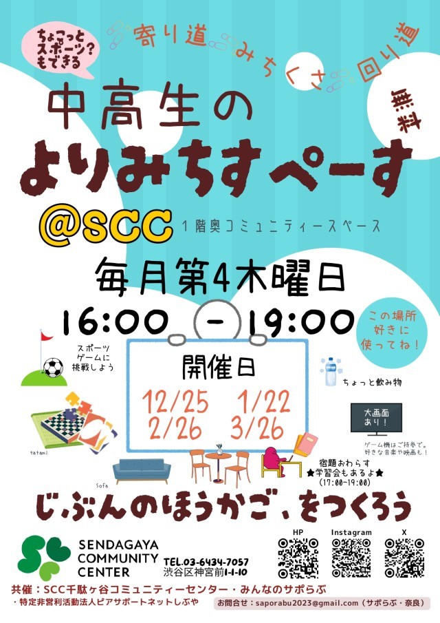 原外カフェでお世話になっている「ピアサポートネットしぶや」の関係者の方からチラシをいただきました。