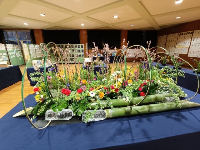 まずは、全校生徒製作の越前和紙 華道部生け花 2年生デザイン画 & 美術部作品