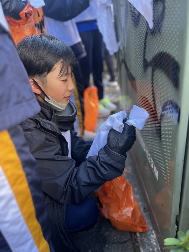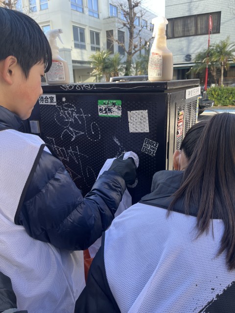 以前から clean&art さんとは落書きを消す活動を生徒と一緒にやろうということをお話していて、それが昨日実現しました。
