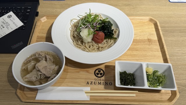 写真は信州産豚バラの南高梅塩つけ蕎麦になります。1,800円です。