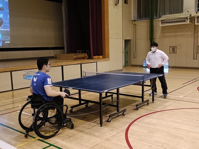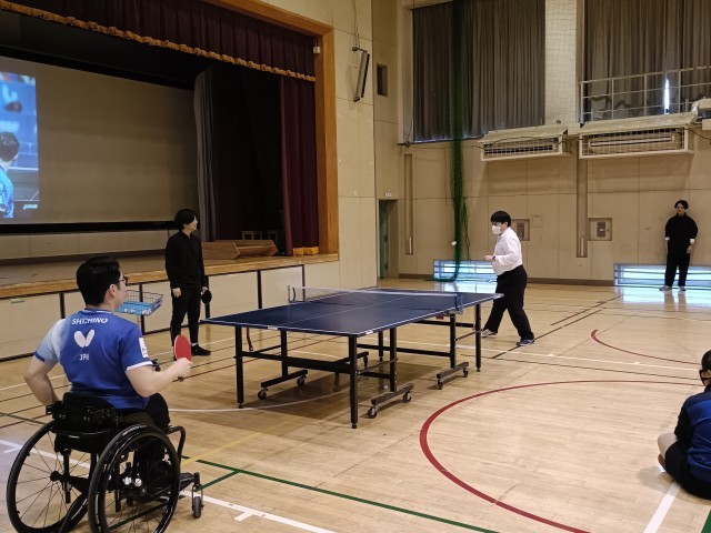 生徒の代表者と対戦   さすがに世界ランキング1位!!