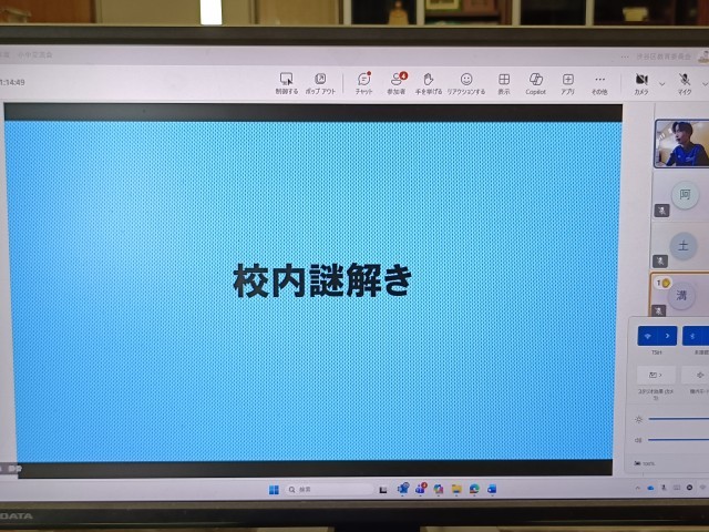 午前の部 2年生が開会のあいさつ そして、 午後に行われる校内謎解きの説明を行い、