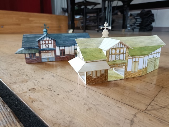 また、紙細工を専門に扱っておられるゲストティチャーをお呼びして、旧原宿駅舎の模型の原型を作ってくださり、それを生徒たちは、地域の皆さんと一緒に作りました。