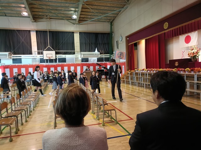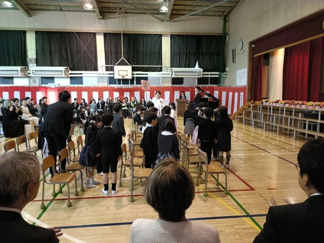 本校の始業式終了後、 おとなりの千駄谷小学校の入学式へ!!