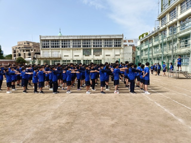 今朝は 生徒会朝礼と1校時目は、体育祭に向けての全校練習がありました
