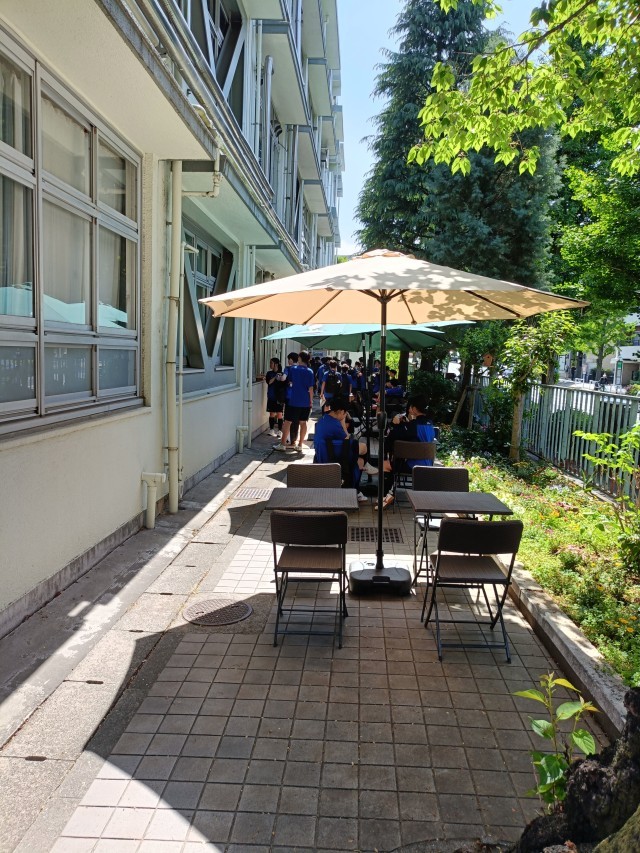 屋外でも 専用テント パラソル シートを設置して 実施中