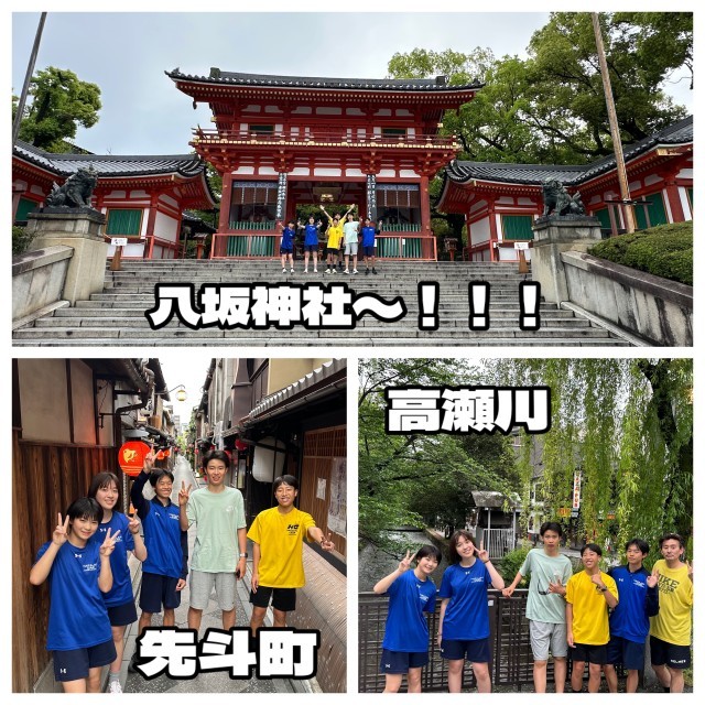 さぁ、ここから一気に紹介します!鴨川の河川敷を上り、まずは四条通りを走って八坂神社を目指しました。そして、みんなで御参り。そのまま清水寺方面に走り、そこから小道に入って花見小路を走りました。置屋が並ぶ街並みを走りました。そのまま、先斗町へ。修学旅行生はまず行かない道ですよね…。細い道でしたが、東京にはない雰囲気でした。そして、そのまま高瀬川で写真撮影!そして宿に向かってラストスパート!