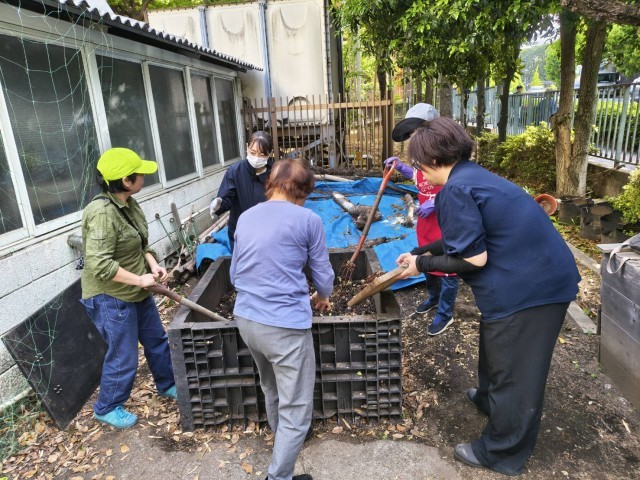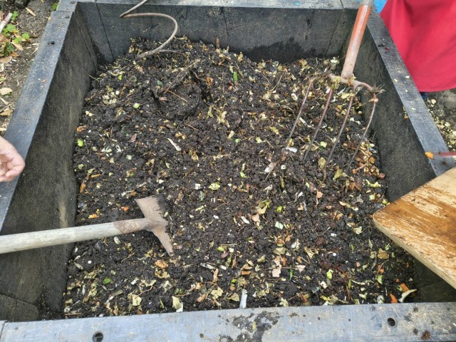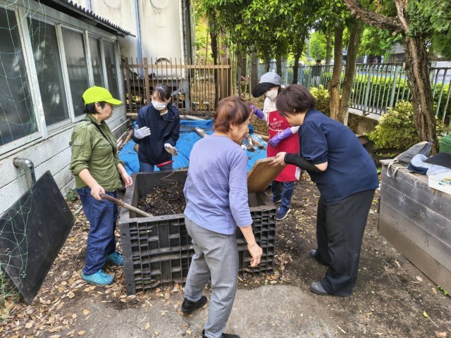 今年度初めての地域の方と一緒にコンポストの切り替えしを行いました。