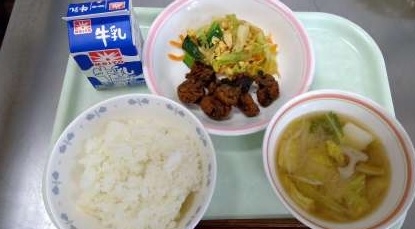 昔の給食でお肉といえばくじらの肉でした。今では高級ですが、当時は手軽に食べられる食材でした。今日のクジラは、下味に玉葱のすりおろしに漬け込んで揚げたものです。美味しくいただきました。