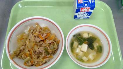 9月13日(火)献立 公開日 2022/09/13 更新日 2022/09/13 今日の給食 ・焼肉丼 ・豆腐とチンゲン菜のスープ 焼肉丼は少しピり辛の仕上がりでした。ごはんがすすみますね。スープは野菜の優しい味が良く出ていて美味しかったです。 いいね(0)