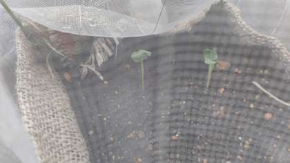 先日種まきをした大根の発芽がはじまりました。まだ全体の1割ほどです。