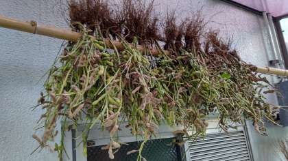 「マメ(味噌づくり)」プロジェクト2023 公開日 2023/09/11 更新日 2023/09/11 お知らせ 本来は畑で完全に枯れるまで育てるのですが・・・次の栽培準備のため収穫しました。2週間ほど乾燥させて大豆を取り出します。 いいね(0)