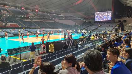 バレーボールのパリ2024オリンピック予選兼ワールドカップ東京2023大会が代々木体育館で開催されています。今日から学年ごとに半日の観戦そしてスタジアム体験ツアーです。今日は2年生。ベルギー対アルゼンチン。アリーナ席で迫力あるプレーを間近で!BGMそしてDJも!