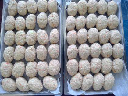 今日は、約325個、手でこねて、丸めて作りました。