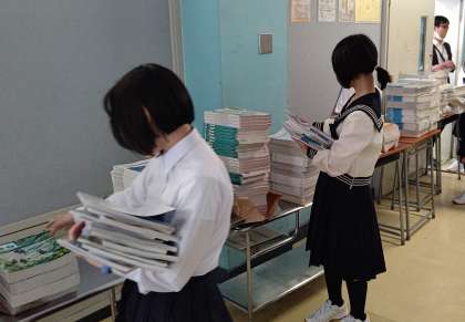 なんと1年生の教科書は17冊も・・・集中して、すべてに名前を記入していました。