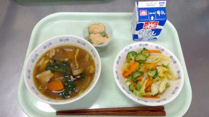 よもぎもちは給食室での手作りです。白玉粉に豆腐の水分でこねて作りました。豆腐を混ぜると、時間がたっても硬くなりにくく、美味しく仕上がります。給食当番がきな粉を振りかけるので、きな粉のさらさら感が残っていました。