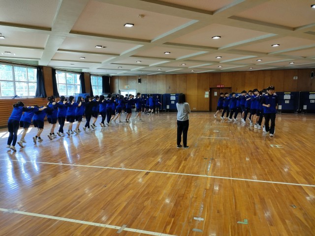 4月30日 クラスごとの体育祭練習!! 体育館下 練習風景