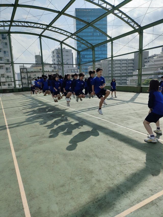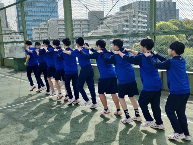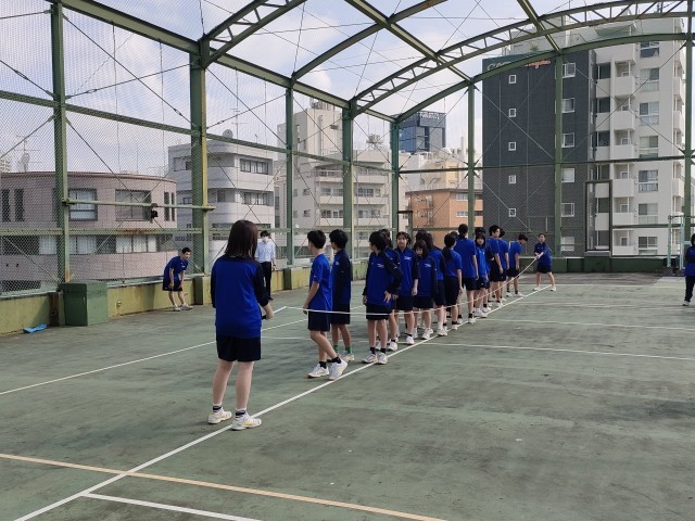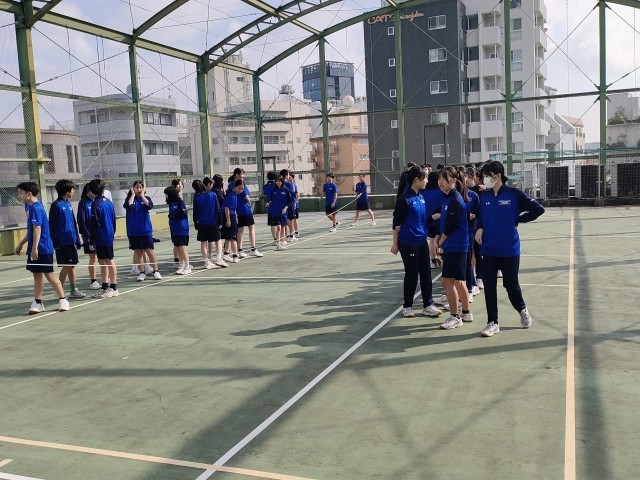 C組 体育館下で 朝練習を開始
