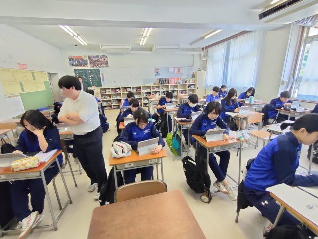 子供たちは、タブレットに提示されたそれぞれの問題を解いていきます。