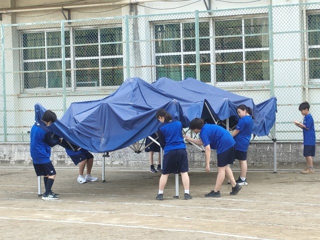 重たいタイプのテントを男子が中心に組み立てていきます!