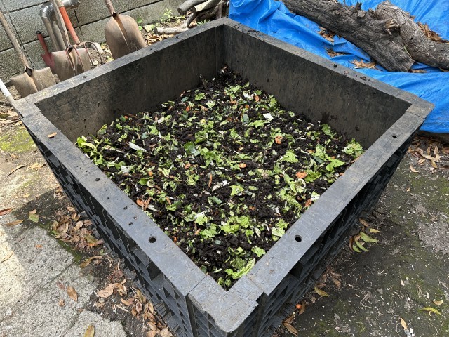 さて、本日はかなりの野菜クズを刻みました。来客および電話対応の合間を見つけ、刻みに刻んだニンジン、ネギ、白菜、カブの葉っぱ、生姜の皮などを混ぜ込みました。大袋3つでだいたい8キロぐらいあったかと思います。