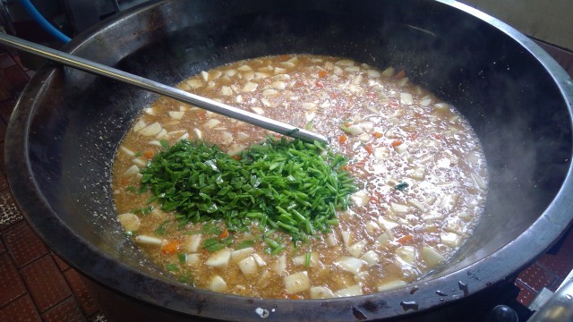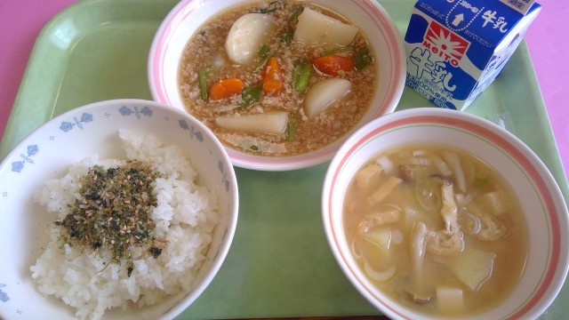 3月~5月に収穫される「春かぶ」は柔らかく、とろける食感が特徴です。今日は、回転釜2台を使って、「かぶのそぼろ煮」を作りました。調理員さんが、綺麗に煮てくれたので美味しく出来上がっていました。