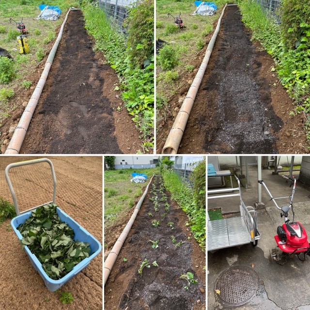先日、紅はるかの苗が届きましたので、天候を見計らってボランティアさんとともに耕作しました。