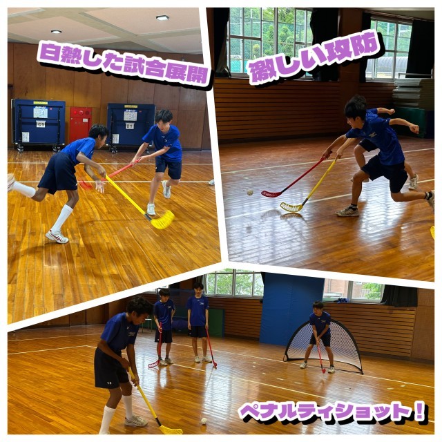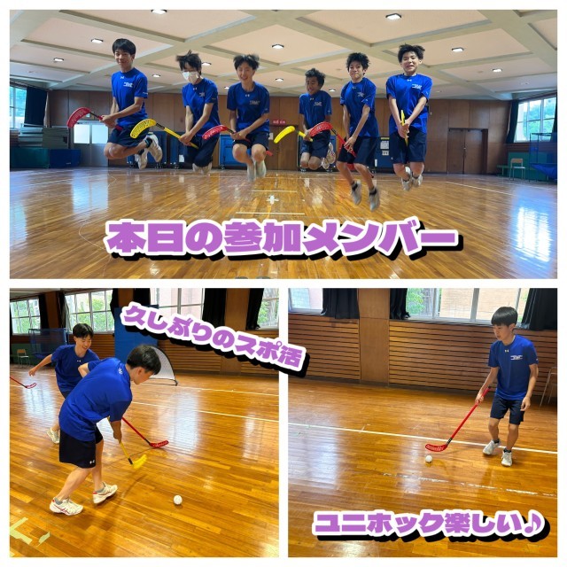 体育祭も無事に幕を閉じて、久々に朝練のない通常の朝を迎えました。スポ活再開と考えていたのですが、昨日告知の更新を忘れてしまったので、金曜日から再開するかと思いながら体育館の1Fに降りると、生徒が6人私を待っていました。「あれ?スポ活しに来たの?告知し忘れちゃったから、金曜日再開って考えてたんだけどな。」と、言うと「もし、あったら参加したいなと思って念のため来ました。きっと先生だったらやるんじゃないかと思いまして。」と生徒たち。そんなに楽しみにしてくれていたのか!と思い、じゃあ、やろっか」となり、ユニホックを楽しみました。久々のスポ活も楽しそうに取り組んでいました。今日の集合写真は、みんなで空を飛びました。