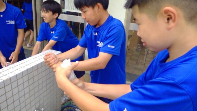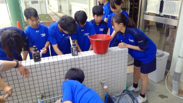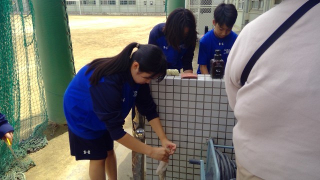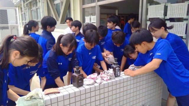 先輩が後輩に雑巾おしぼり方を教えてあげながら、片付けまでしっかりと行いました。