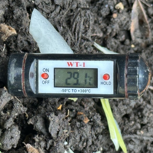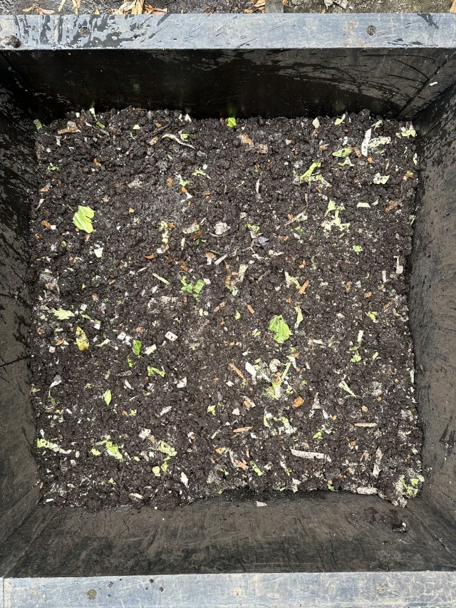 堆肥の様子も落ち着いてきているので、次回、麻袋を刻んで混ぜ込む予定です。