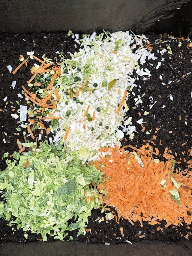 さて今日は給食の野菜くずが3日分あったので頑張って刻みました。色とりどりできれいです。