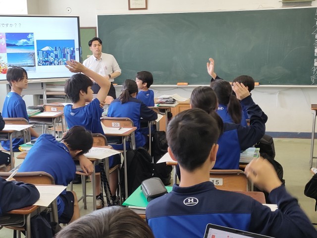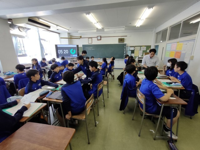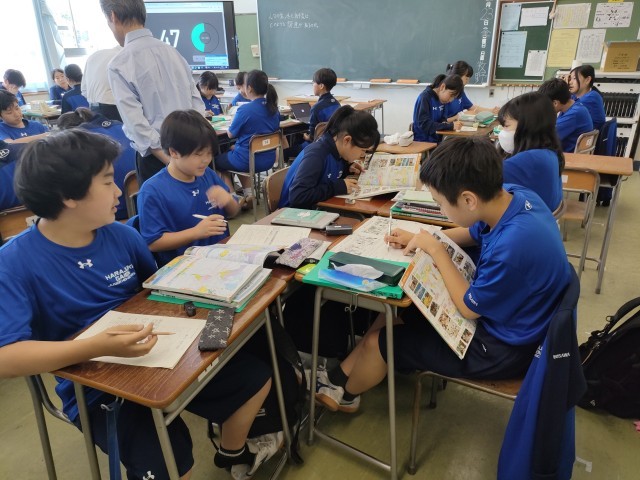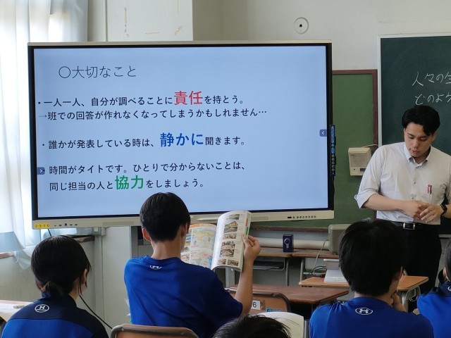 今日の4校時目 1年B組の社会科の授業を見ました。