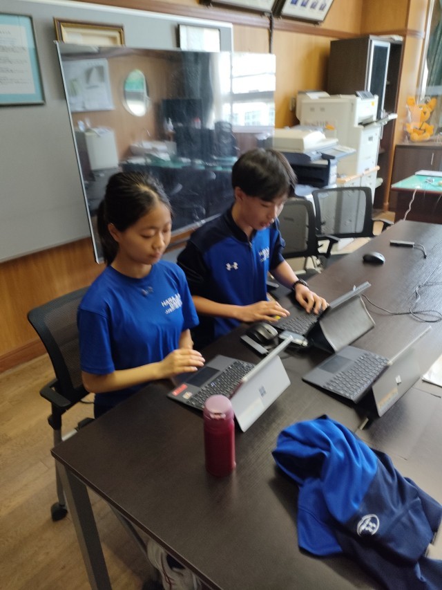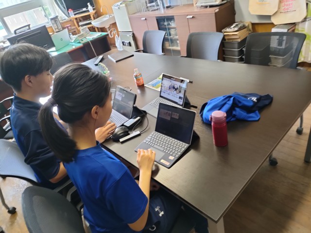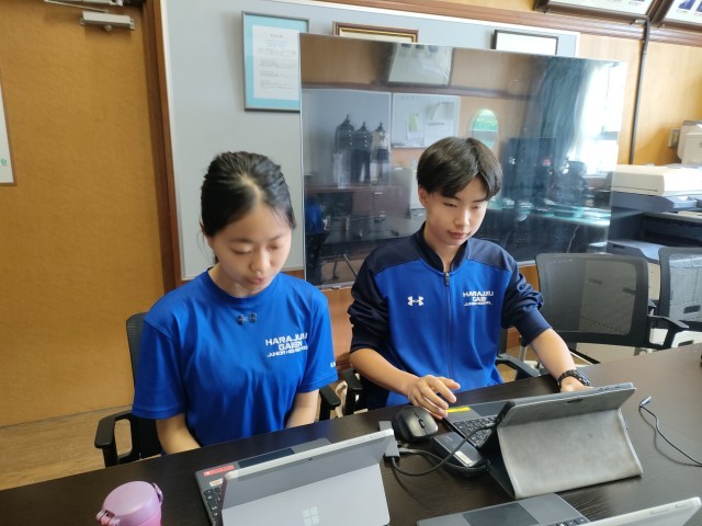 生徒会2名 タイトルの通り、 今日は、神宮前小学校の全校朝会にオンラインで入らせてもらって
