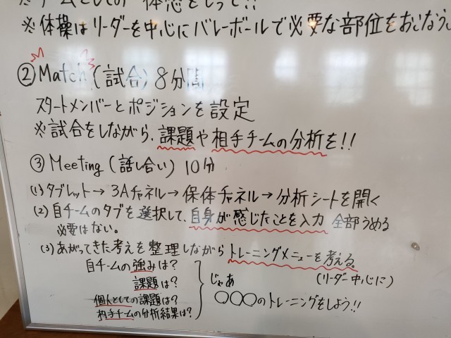 自分のチームの分析 それを踏まえて どんな練習をするかを各チームで決定していきます
