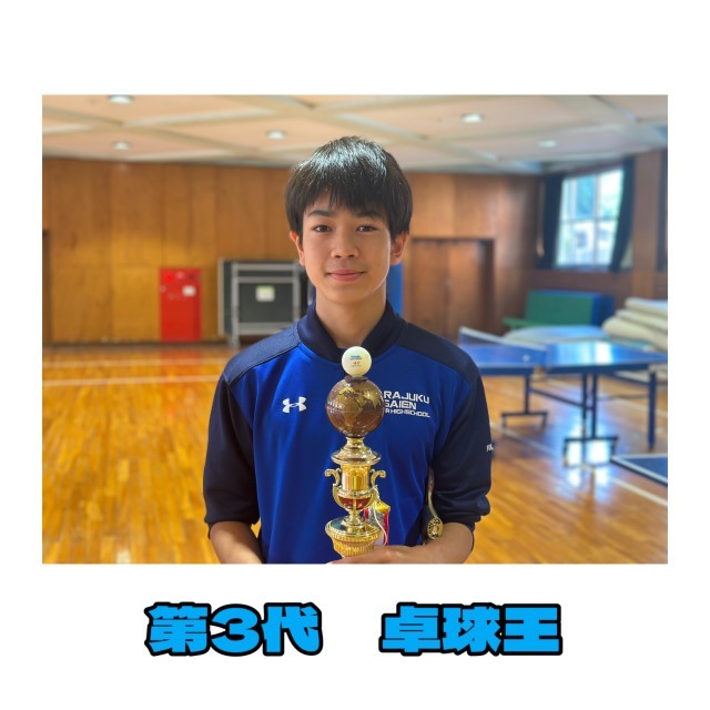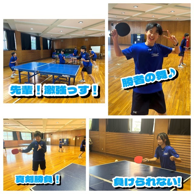 今日は、久々の卓球王決定戦が行われました!今回で3回目となる大会です!前回は、卓球部顧問の水村先生が優勝!今回、水村先生は、欠場となり、さらには第1回の卓球王も来なかったので、新チャンピオンが決まるそんな大会になりました!10名ものエントリーがあり、3リーグに分かれて試合を行いました。卓球部と試合する時には5-0からスタートするハンデマッチ。11点先取で勝ちとなります。女子生徒も参加してくれて、負けじと頑張っていました!そして、白熱した戦いを制したのは……3年生でした!危なげない戦いで、第3代卓球王に輝きました!彼にとっては、悲願のタイトルかもしれません!おめでと〜!!