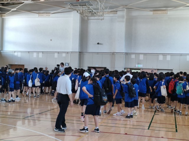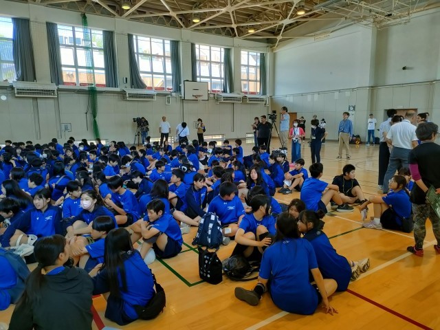 開会式には、マスコットキャラクター じんけんまもる君も参加