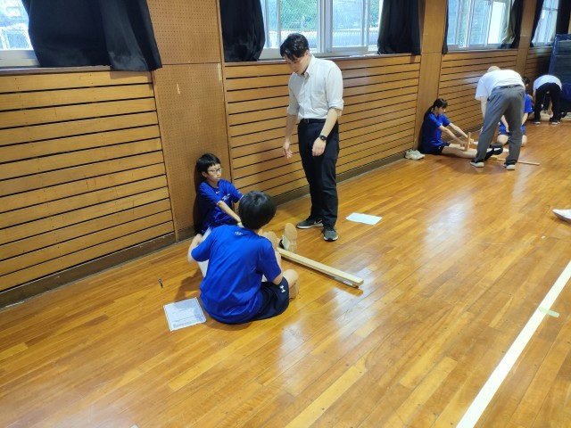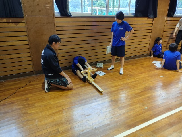 ここでも測定を生徒たちが行います。 生徒たちがそれそれの種目を円滑に受けるために