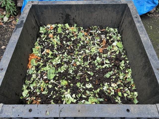 蓋を開けた瞬間、ムワッとした臭気が鼻をつきました。先日入れた麻袋は徐々に柔らかくなっている様子。分解が進んでいます。