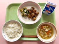 今日の給食は、岩手県盛岡市の郷土料理でした。盛岡じゃじゃ麵は、うどんよりも少し幅が広い麺の上に、肉味噌やきゅうりがのった麺料理です。中国のジャージャー麵を参考に考えられたといわれています。