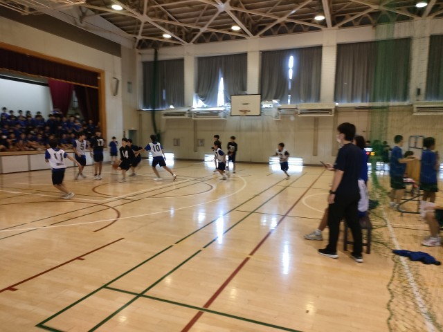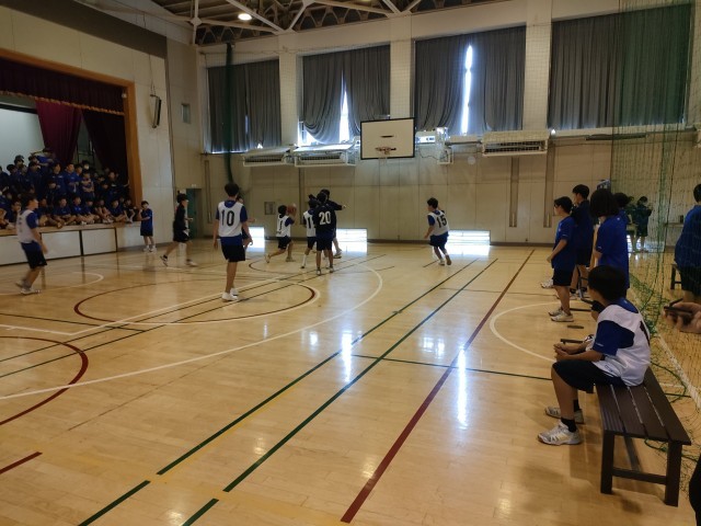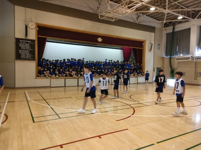 生徒のほとんどが 体育館に集まり、 熱戦に応援を!!