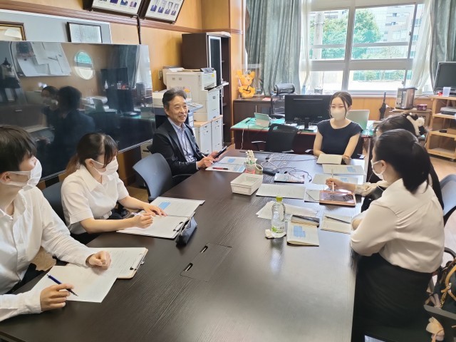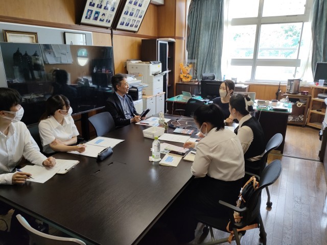 授業視察後 校長室で 授業づくりについて 学生さんたちに説明をその中で、話し合うこだわりについても話していました。