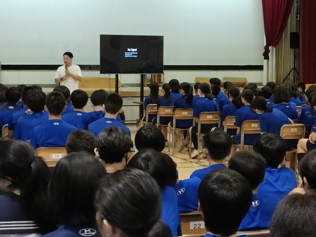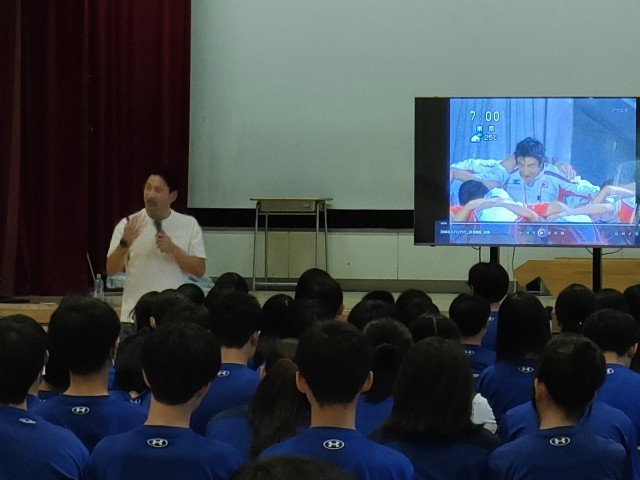 お話の最後に3年生の代表生徒が、「私たちも近々 部活で最後の試合が迫っています。そんなこともあり、今日のお話は、とても参考になった」お礼の言葉を添えました!