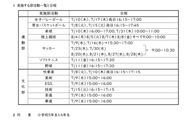 7月4日【対象小学校5・6年生】部活動体験募集中