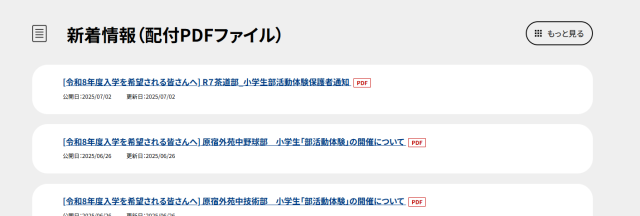 本校のHPのトップ すぐ下に 新着情報のコーナーに続々と各部ごとの部活動体験のお知らせがあります。