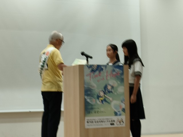 昨日 HPでお伝えしたとおり 2年生の2人の作文発表&吹奏楽部の演奏がいま、無事に終わりました。