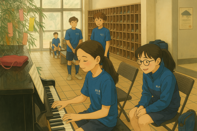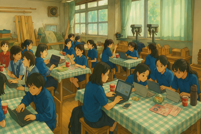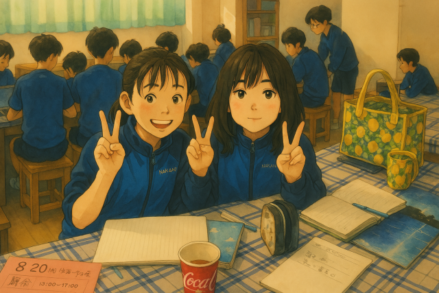 いかに有意義に過ごすかが生徒に委ねられています。学習を進めている生徒、談笑あり、合唱練習もあり。各自でマナーを守って楽しんでいる様子が見受けられました。